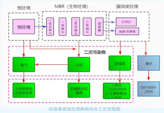 “生化+雙級DTRO”和“生化+MBR+納濾(NF)+反滲透(RO)”膜處理工藝,是目前國內(nèi)垃圾滲濾液行業(yè)除氨氮采用的主流技術(shù)。垃圾滲濾液經(jīng)過前端生化以及混凝沉淀,后經(jīng)兩級DTRO膜或納濾+反滲透等膜工藝進(jìn)行濃縮分離。